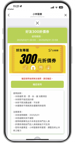 注意事項:小林髮廊保留取消、終止、修改或暫停本活動之權利。