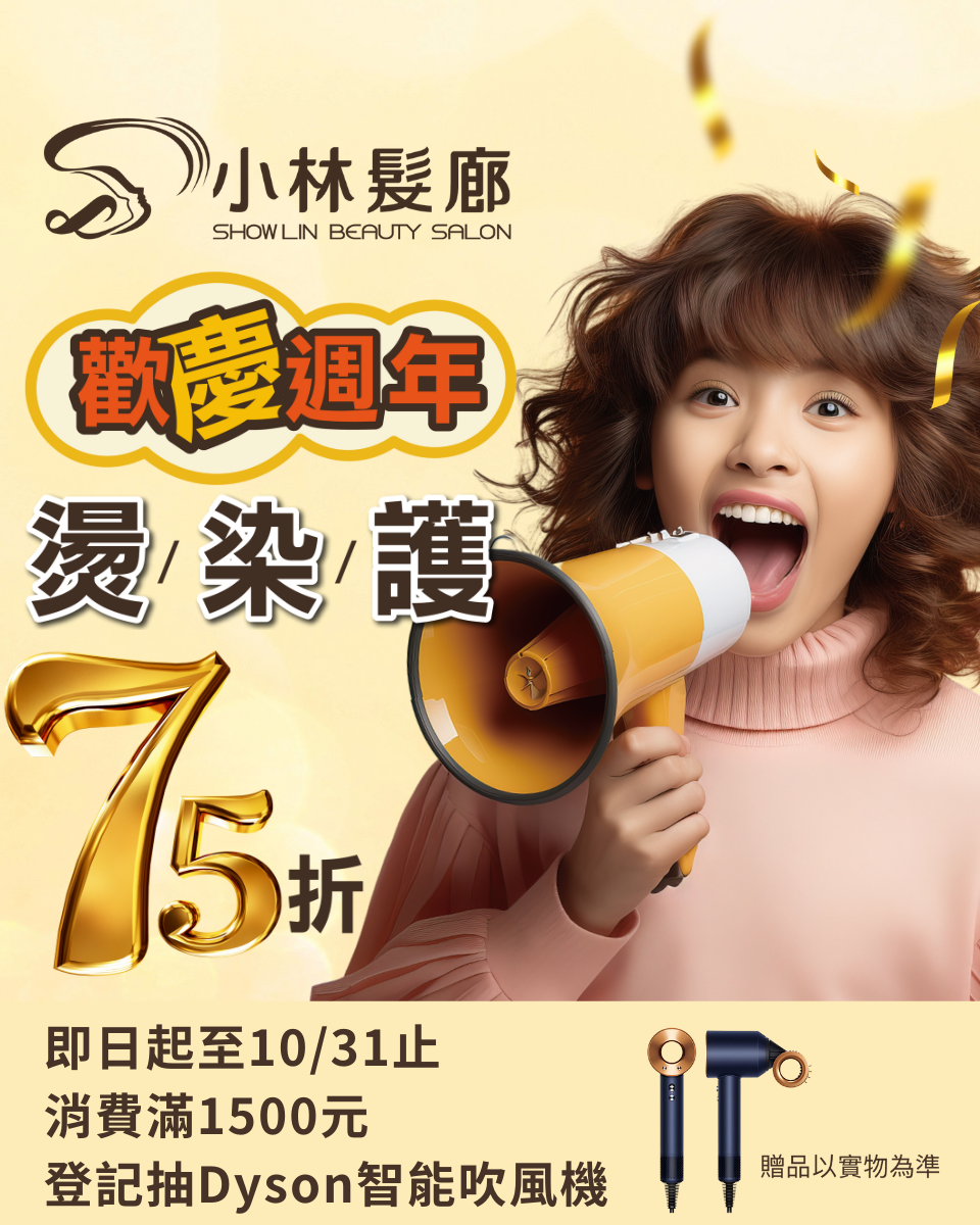 歡慶週年|燙染護 75 折+抽 Dyson吹風機