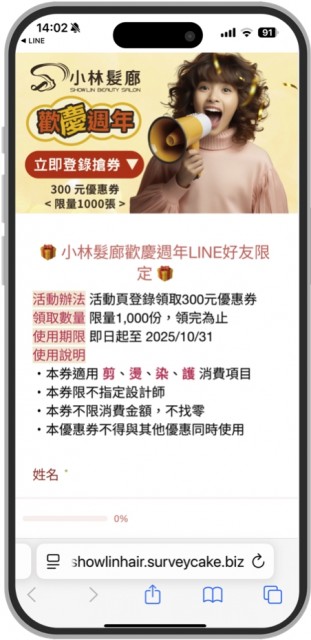 🎁 LINE好友限定| 登錄活動領 300 元優惠券< 限量1000張 > 送完為止!
