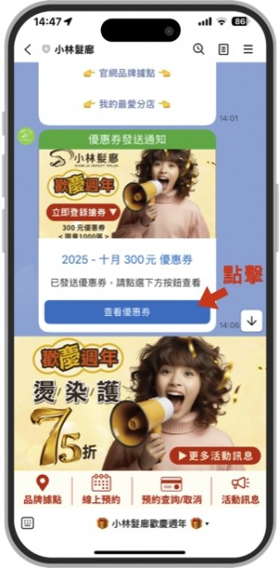 溫馨提醒:使用優惠券請至LINE開啟小林髮廊LINE帳號並消費前告知店家要使用喔~ 💖