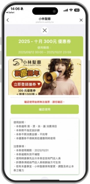 注意事項:小林髮廊保留取消、終止、修改或暫停本活動之權利。